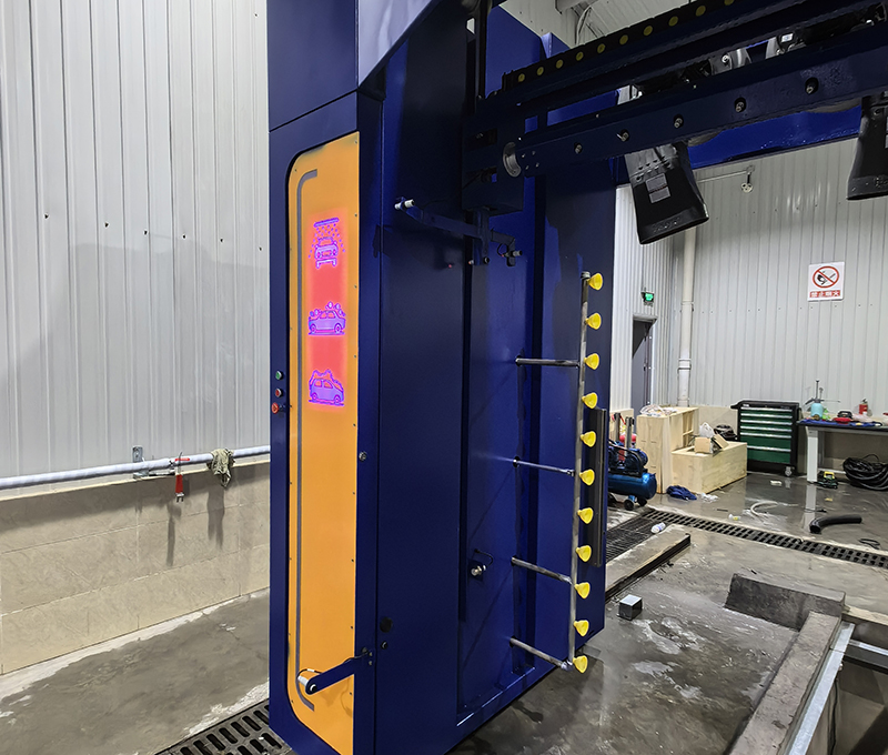 3、360度高壓水刀清洗,進口水泵配合大功率電機,直驅(qū)鏈接方式,保證沖洗壓力,勻速,勻壓,勻距清洗車身,德國倍加福超聲波檢測,內(nèi)嵌式吊梁行走方式配合私服電機,行走穩(wěn)定,行走速度可調(diào)節(jié);
