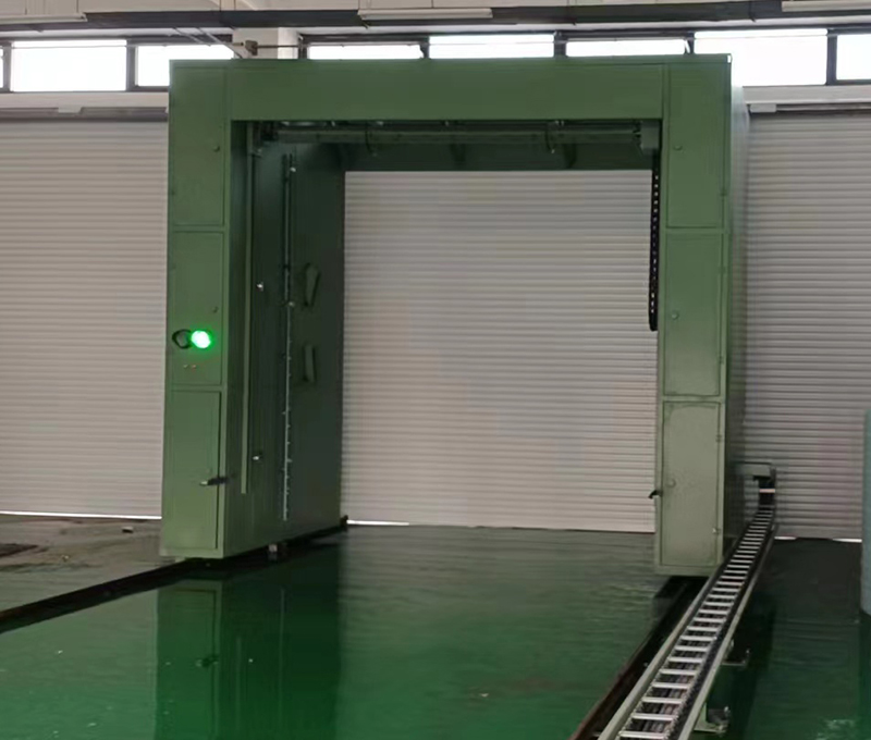 3、360度高壓水刀清洗,進口水泵配合大功率電機,直驅鏈接方式,保證沖洗壓力,勻速,勻壓,勻距清洗車身,德國倍加福超聲波檢測,內嵌式吊梁行走方式配合私服電機,行走穩定,行走速度可調節;